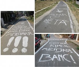 Jalan desa pun semakin nampak jelas tanda garis putih. Tak ketinggalan kata-kata semangat menyambut Agustusan inipun terlukis ditengah-tengah jalan. Namun, sesekali anak muda pun mengungkapkan ekspresinya di jalan tersebut. “Akbar Cinta Meta” ada juga “Neng, kutunggu dirimu di ujung jembatan”, atau pun kreativitas menciptakan kata.