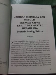 “Ciri utama santri, harus menguasai ilmu agama”, ungkap Kisbiyanto. Kunci cerdas sekaligus ayat pertama yang diturunkan adalah Iqro’ (membaca). Maka untuk dapat menulis yang baik, harus menjadi pembaca yang baik pula.